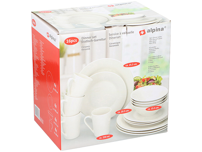 Alpina – Dinner set 16stk white SW Ø25.5/20.5/15.5cm 220ml
