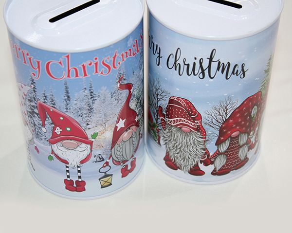 Gnome money box 13x8cm, made of metal, 2 cute gnome motifs assorted, with Merry Christmas