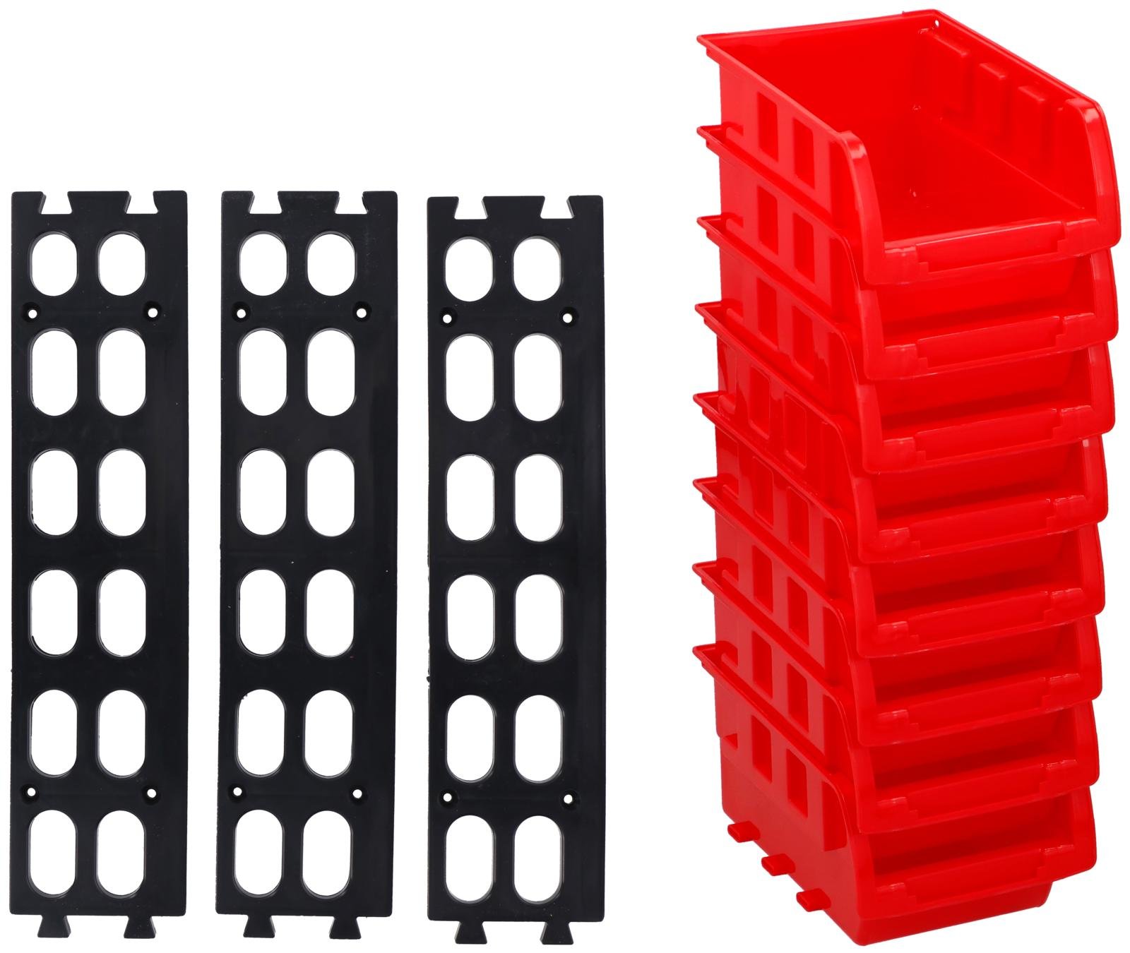 Practical stackable tray for storing tools and parts. Perfect for organized storage in workshop, shed, or garage.
