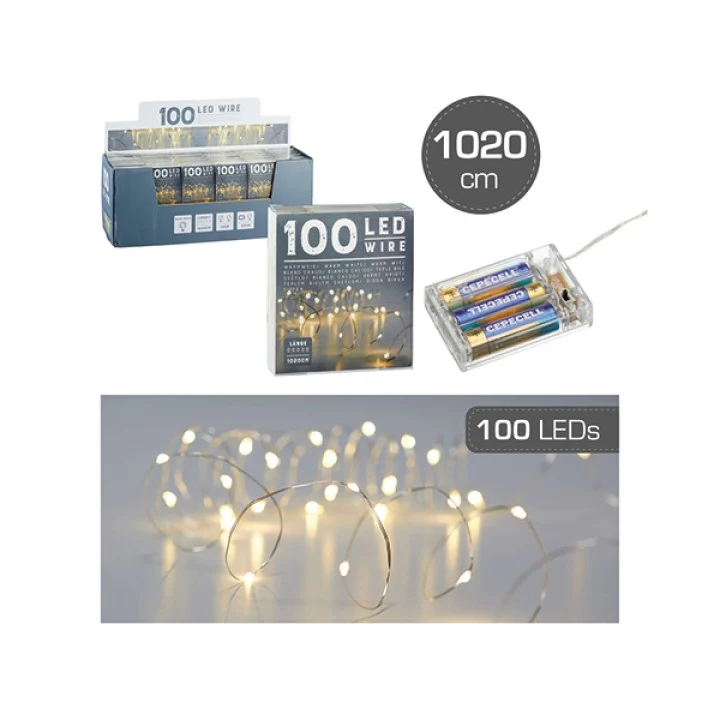 Lichterkette Draht / Mikro, 100 LED, 1000cm, in transp. Box und im Displ. , Batterien nicht enhalten