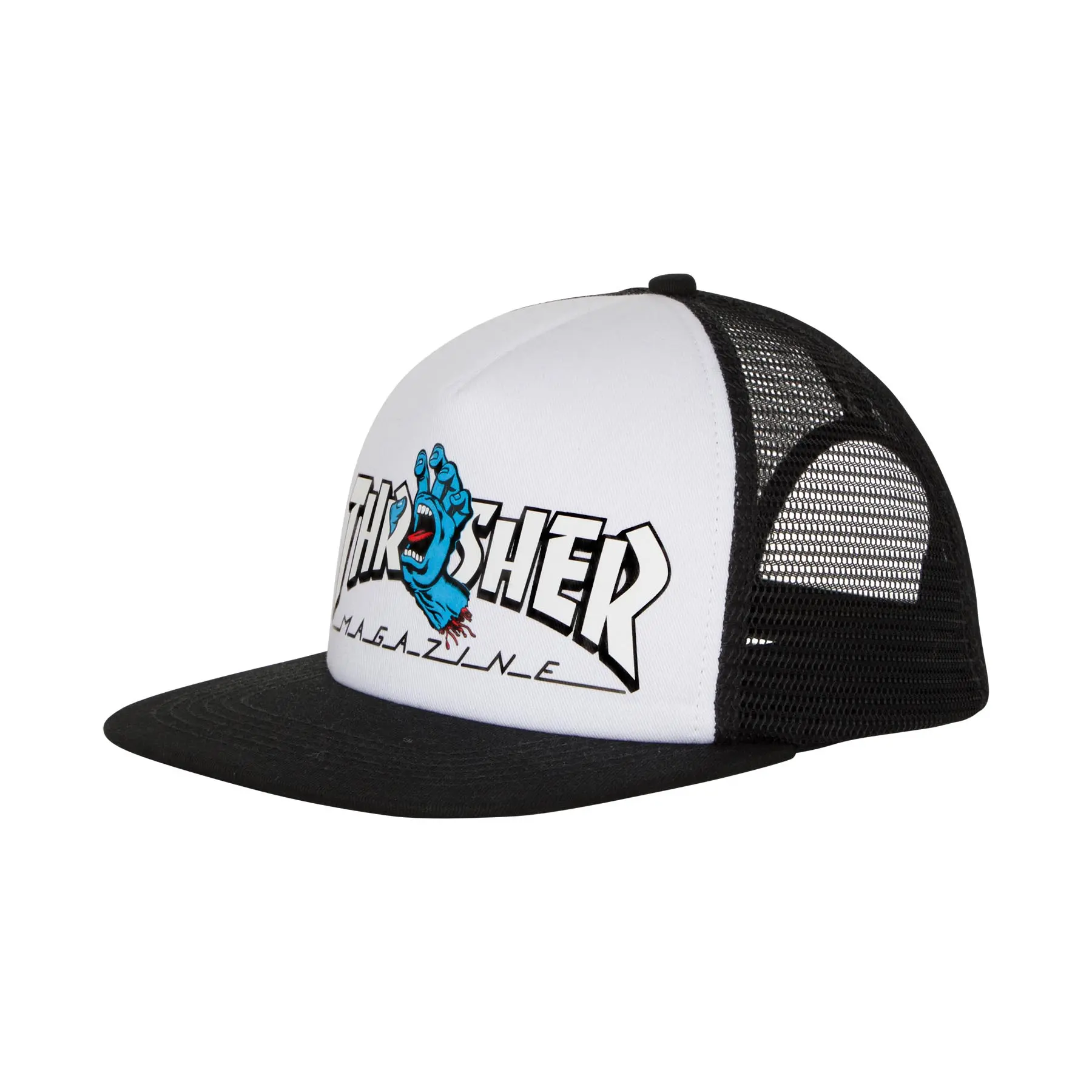 Thrasher Screaming Logo Mesh Trucker High Profile Hat Wht/Blk OS Unisex